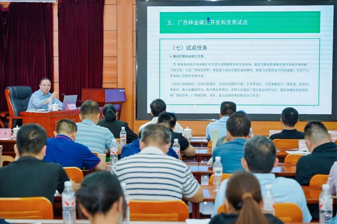 为推动理论知识向实践能力转化,提升培训实效,授课现场聚焦实务操作,详细讲解了林业碳汇项目开发和交易的条件要求、推进模式、具体流程、成本构成、主要难点及减排量签发与交易原理等核心内容,结合区内外典型案例拆解分析,帮助参训人员弄通政策原理、吃透关键环节、掌握实操技能、把控重点细节,切实打通政策落地“最后一公里”,助力参训人员将所学知识转化为推动碳汇生态产品价值实现的实际能力。